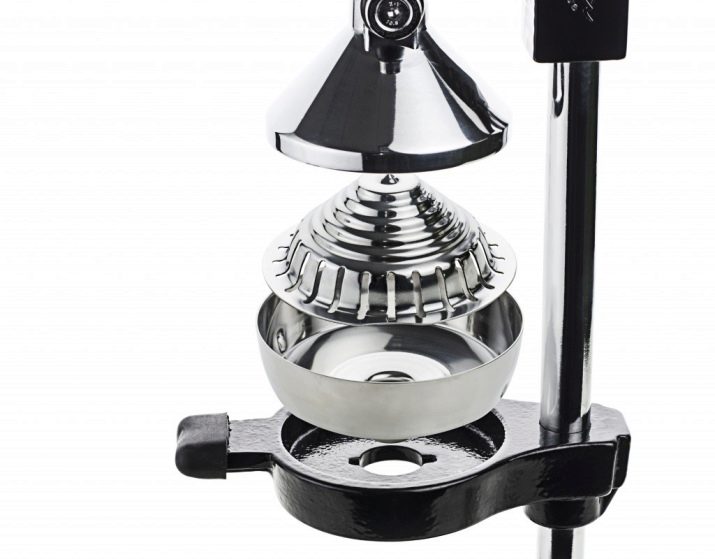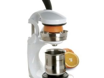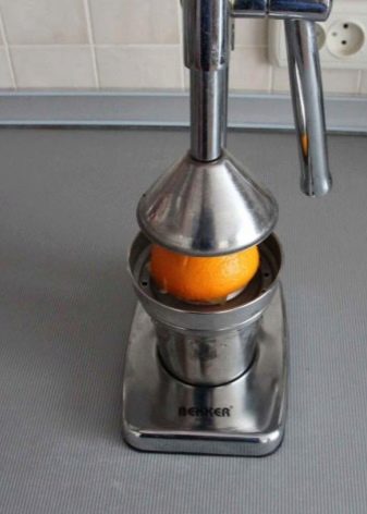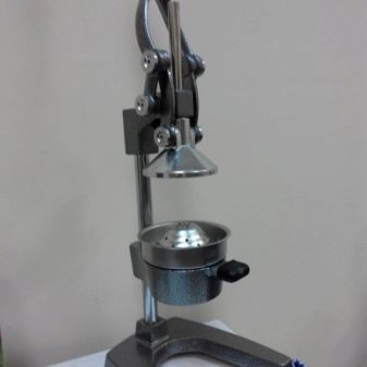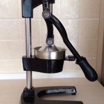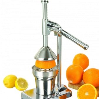 Принцип работы такого прибора достаточно прост: для того чтобы получить сок, половинки цитрусовых нужно зафиксировать между металлическими или пластмассовыми пластинами, в зависимости от модели, и надавить на рычаг. Это очень удобно, если вам требуется совсем немного сока, скажем для коктейля, заправки салата или какого-то соуса.