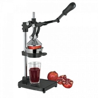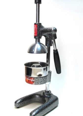 - ручная, самая простая в использовании. Добывать сок из нее можно при помощи силы ваших рук;