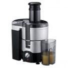 - Для переработки твердых плодов. Соковыжималки повышенной мощности. Они сначала разбивают плод, а уже потом отжимают сок из мякоти. Жмых остается в специальном контейнере.