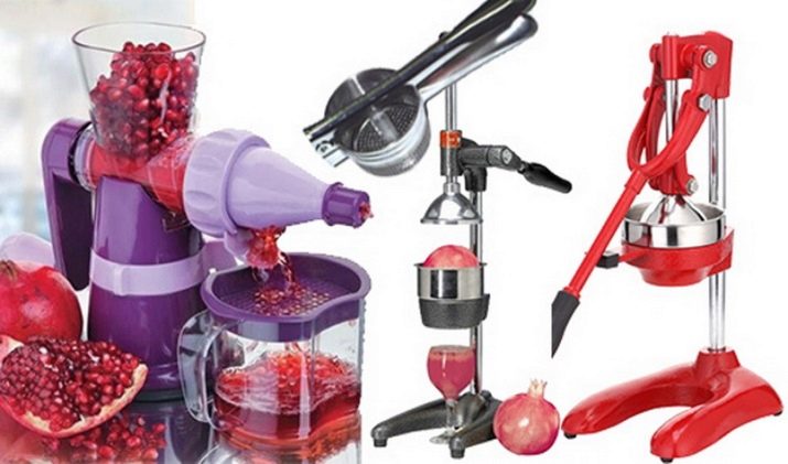 В продаже можно найти устройства, различающиеся по принципу действия и конструкции. Соковыжималка для граната бывает:
