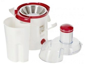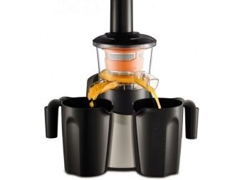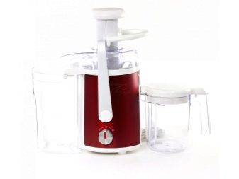 - Также стоит посмотреть на комплектацию соковыжималки. Так, в комплекте может идти не одна терка, конусы для отжима, толкатели для сырья. Могут современные модели обладать и дополнительными функциями. Например, автоматическая очистка центрифуги, турбоотжим и др.