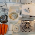 Несмотря на несколько нестандартное строение, разобрать и почистить такую технику не составит большого труда. Чаша для блендера объемом в 1 литр изготовлена из стекла и легко моется, а сам блендер достаточно мощный. Помимо этого, в ассортимент входят все необходимые для работы насадки.