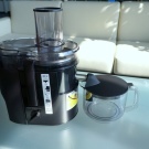 Центрифуга соковыжималки, а также ситечко, изготовлены из нержавеющей стали. Они во многом схожи с аналогичными деталями упомянутой немного выше модели. Мощность значительно слабее, всего 300 Вт, поэтому скорость и выход сока немного ниже. Тем не менее, данная модель также снабжена автоматической системой разрыва цепи на случай риска перегрева моторчика.