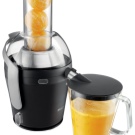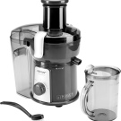 Эта центробежная соковыжималка имеет опцию блендера и позволяет загружать фрукты и овощи неочищенными и не нарезанными. Прозрачные стенки резервуара помогут увидеть количество жидкости внутри, а высокая мощность позволяет моментально приготовить литр сока.