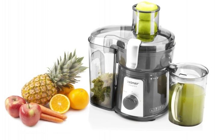 Односкоростные – самые дешевые и простые в использовании аппараты. Яркий пример – соковыжималка Zelmer 377. Имеют мощность 85-250 Вт, в комплект не входит емкость для готового сока. Дополнительные функции включают в себя отключение при чрезмерном перегреве и защиту от случайного включения.
