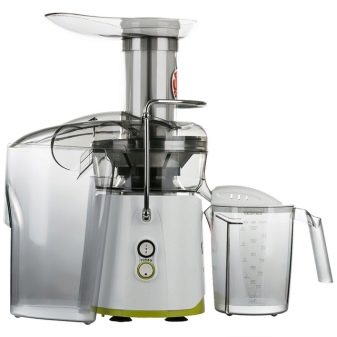 Такая соковыжималка с механическим управлением работает как центрифуга, она оснащена отдельной емкостью для сока. Ширина отсека для сырья – 7,5 сантиметров. Среди дополнительных функций имеется пено сепаратор, блокировка включения при открытой крышке и автоматический выброс мякоти.