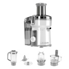 Модель имеет опции для приготовления сока и пюре и для сбора жмыха. Работает она при помощи двухстороннего реверсного вращения деталей и имеет блокировку включения, если крышка не закрыта или закрыта неплотно.