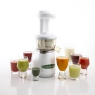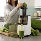 Модель имеет шнековый вариант отжима. То есть, сок можно выжимать не только из фруктов и овощей, но и растений. Способ прессования позволяет выжать из мякоти максимум. Отличия от других производителей: потребляет мало энергии, имеет съемный стакан, небольшого веса. Так как у модели имеются резиновые ножки, ее расположение можно менять.