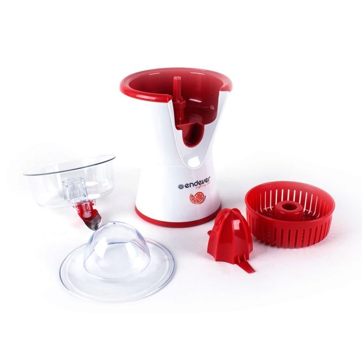 Механизм работы: при эксплуатации, фрукты необходимо поддерживать рукой, выжимая сок (это не относится к более дорогим аналогам). Прибор можно разложить на следующие составляющие: контейнер для сока, конусообразные лезвия и мини-двигатель с мощностью от 30 до 90 Вт.