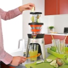 - благодаря различным насадкам, которые прилагаются к прибору, можно будет менять функции выжима: делать сок гуще, с мякотью, или прозрачнее;